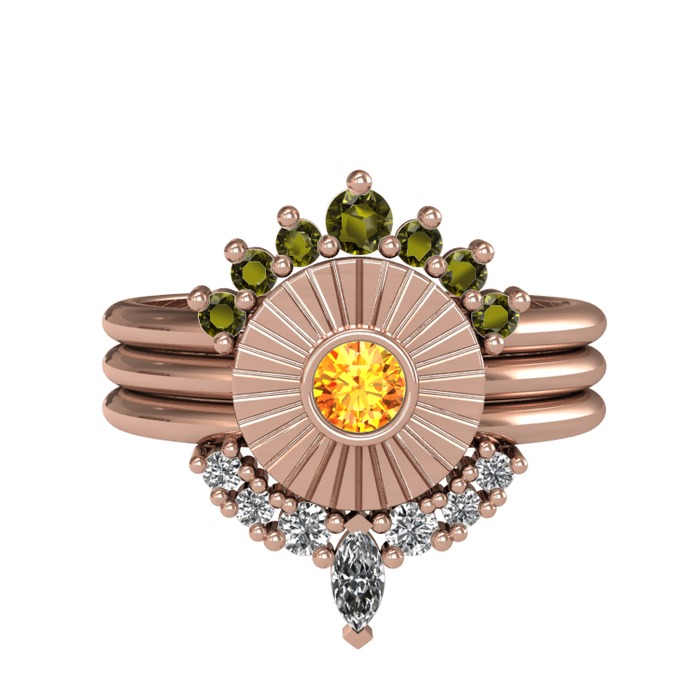 Peridot, sitrin ve swarovski 14 ayar rose altın yüzük