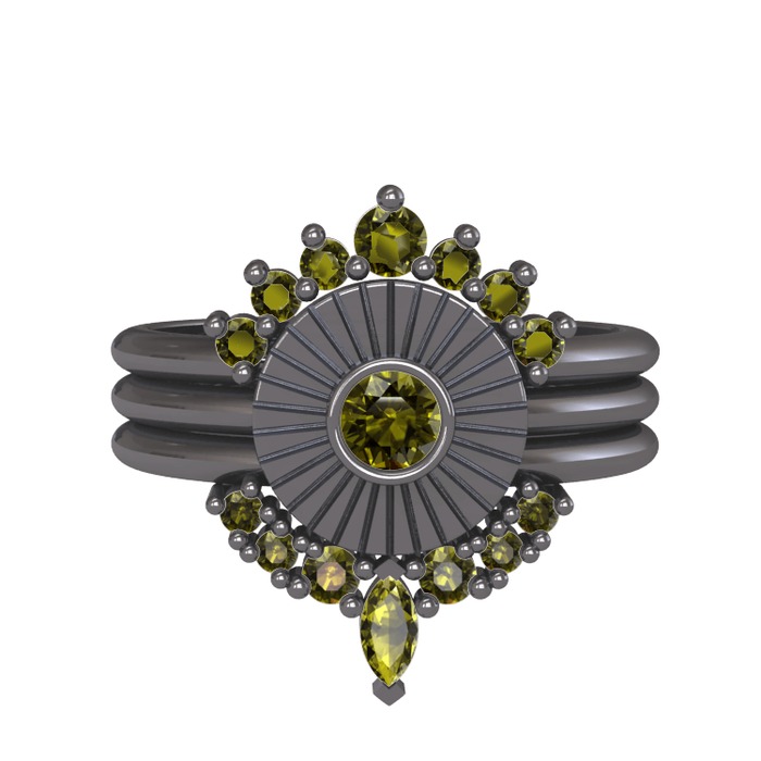Peridot 925 ayar siyah rodyum kaplama gümüş yüzük