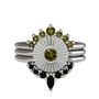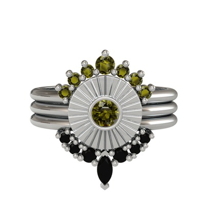 Peridot ve siyah zirkon 14 ayar beyaz altın yüzük