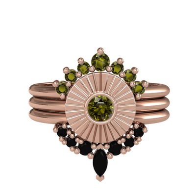 Peridot ve siyah zirkon 18 ayar rose altın yüzük