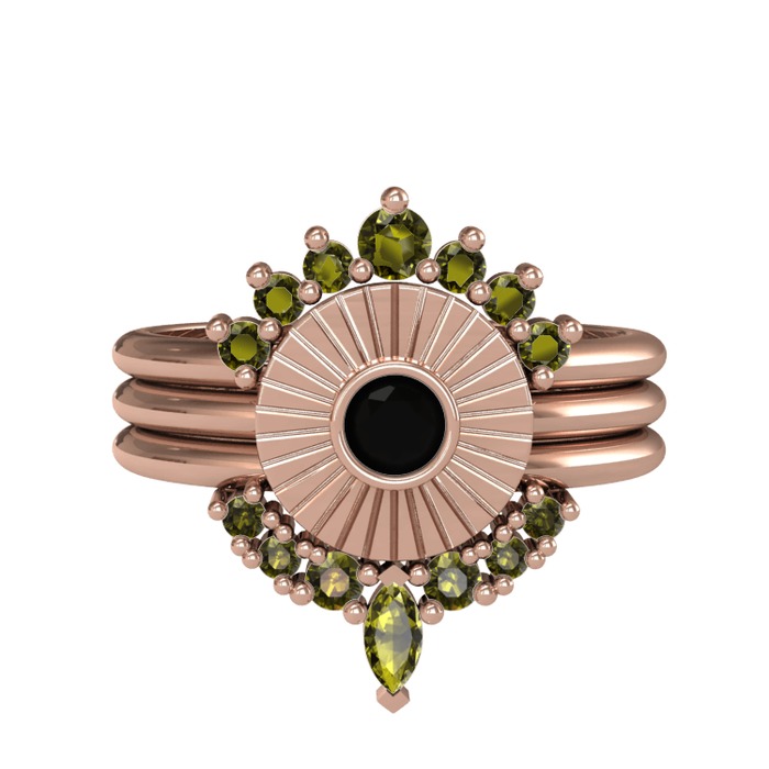 Peridot ve siyah zirkon 18 ayar rose altın yüzük