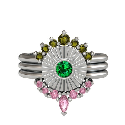 Peridot, yeşil kuvars ve pembe kuvars 8 ayar beyaz altın yüzük