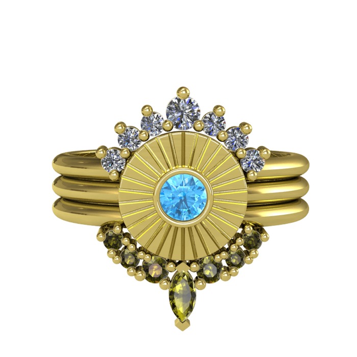 Pırlanta, akuamarin ve peridot 8 ayar altın yüzük (0.42 karat)