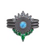 Pırlanta, akuamarin ve yeşil kuvars 925 ayar siyah rodyum kaplama gümüş yüzük (0.42 karat)