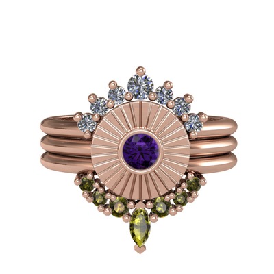 Pırlanta, ametist ve peridot 14 ayar rose altın yüzük (0.42 karat)