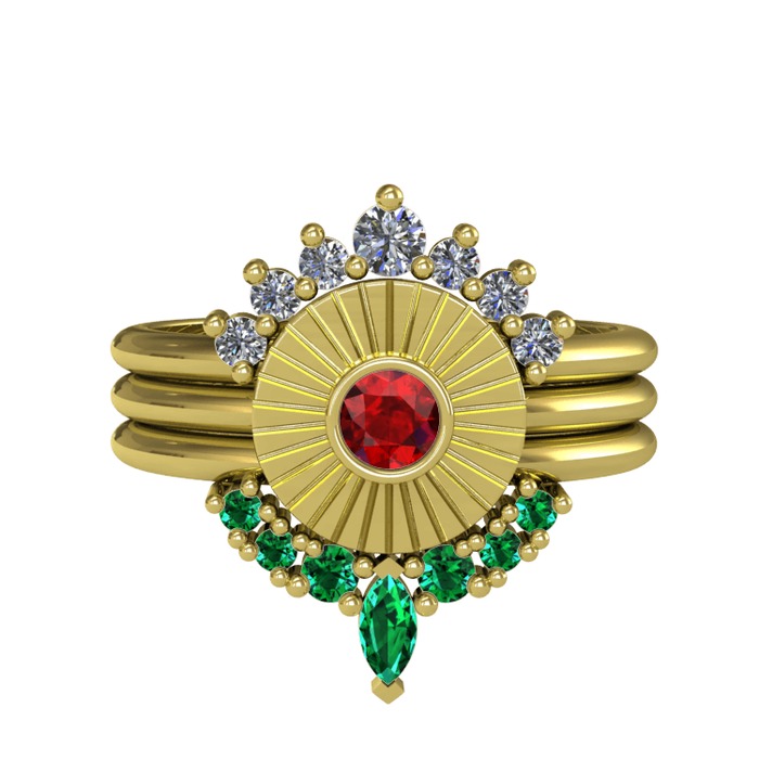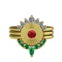 Pırlanta, garnet ve yeşil kuvars 14 ayar altın yüzük (0.42 karat)