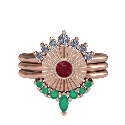 Pırlanta, kök yakut ve kök zümrüt 8 ayar rose altın yüzük (0.42 karat)
