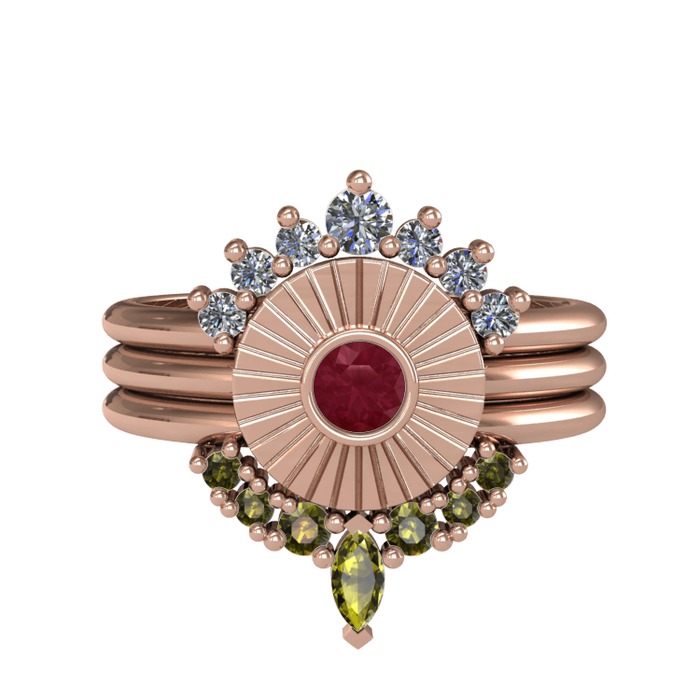 Pırlanta, kök yakut ve peridot 8 ayar rose altın yüzük (0.42 karat)