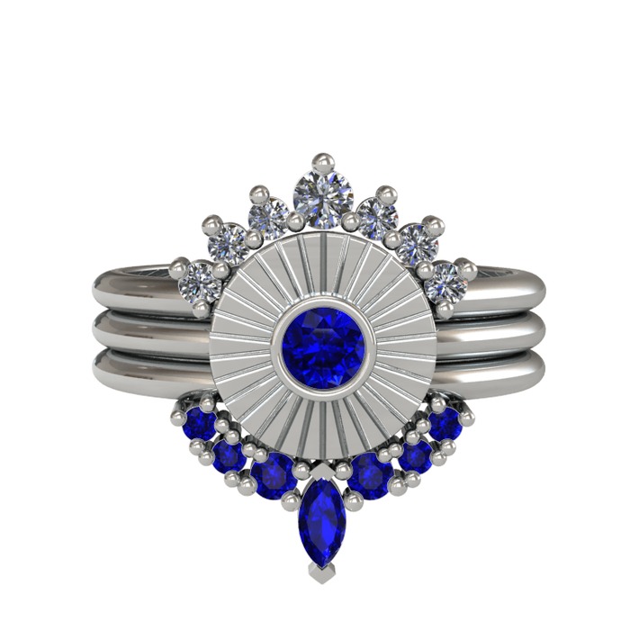 Pırlanta ve lab safir 8 ayar beyaz altın yüzük (0.42 karat)