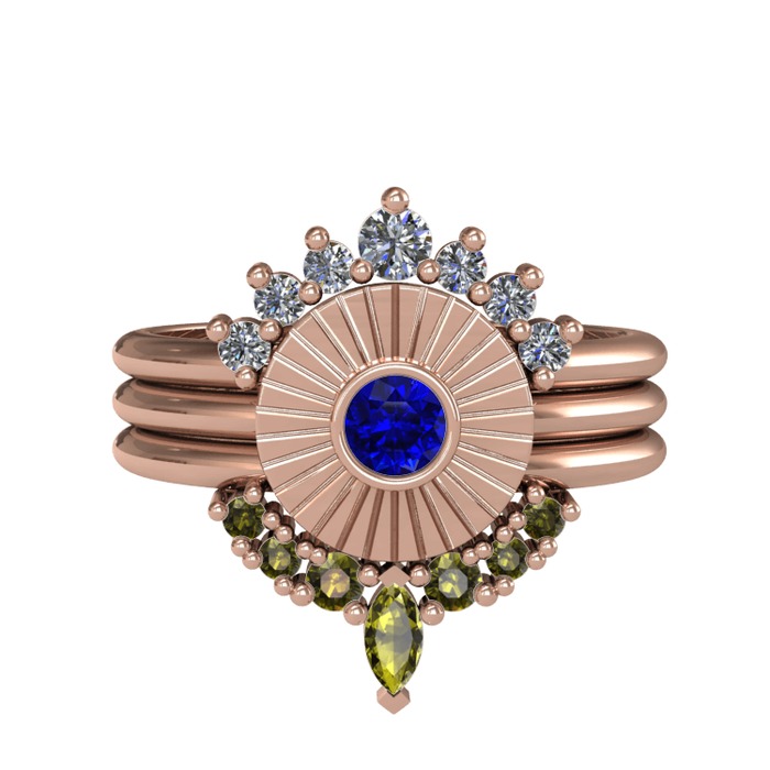 Pırlanta, lab safir ve peridot 14 ayar rose altın yüzük (0.42 karat)