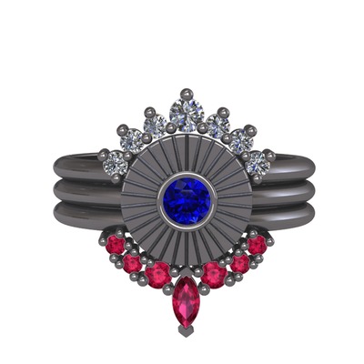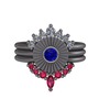 Pırlanta, lab safir ve rodolit garnet 925 ayar siyah rodyum kaplama gümüş yüzük (0.42 karat)