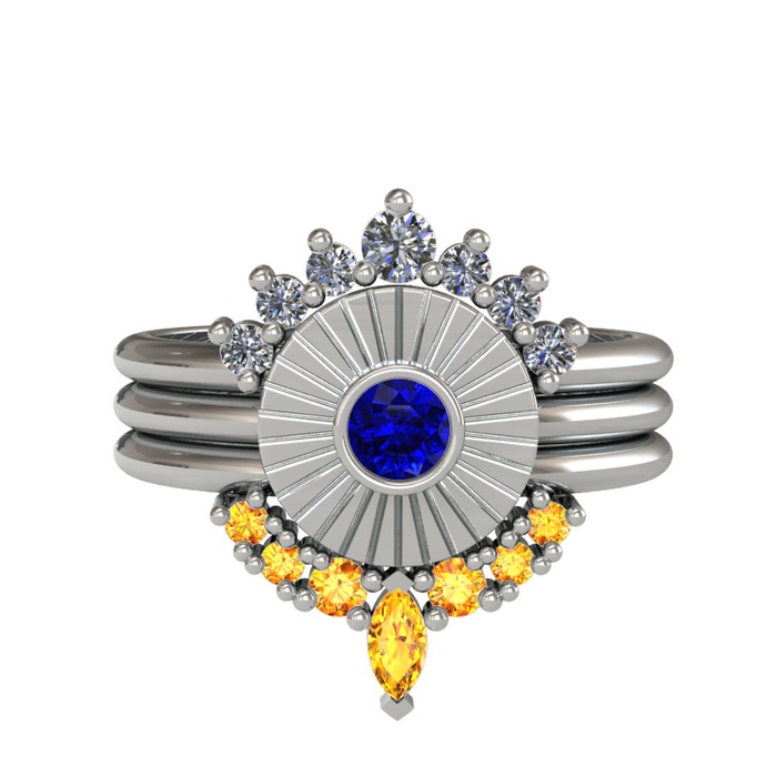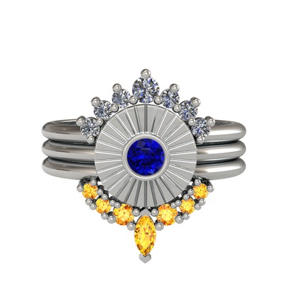 Pırlanta, lab safir ve sitrin 18 ayar beyaz altın yüzük (0.42 karat)