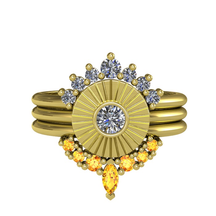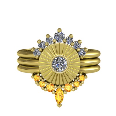 Pırlanta ve sitrin 14 ayar altın yüzük (0.58 karat)