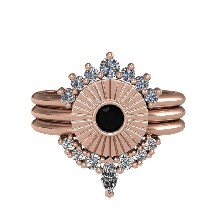 Pırlanta, siyah zirkon ve beyaz zirkon 8 ayar rose altın yüzük (0.42 karat)
