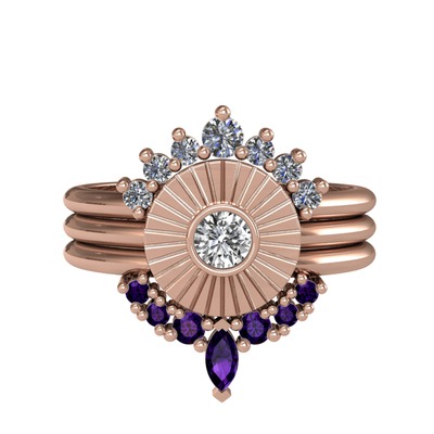 Pırlanta, swarovski ve ametist 14 ayar rose altın yüzük (0.42 karat)