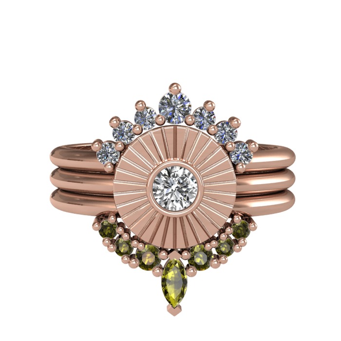 Pırlanta, swarovski ve peridot 925 ayar rose altın kaplama gümüş yüzük (0.42 karat)
