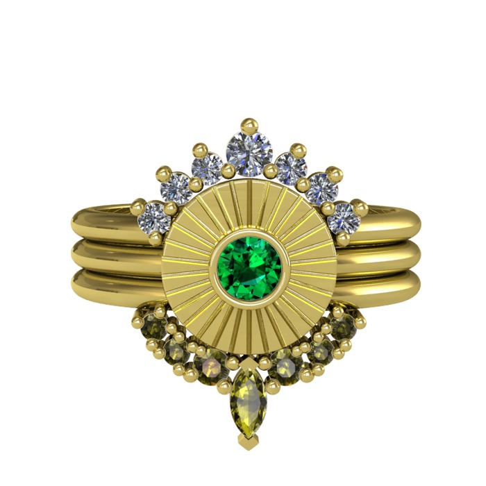 Pırlanta, yeşil kuvars ve peridot 18 ayar altın yüzük (0.42 karat)