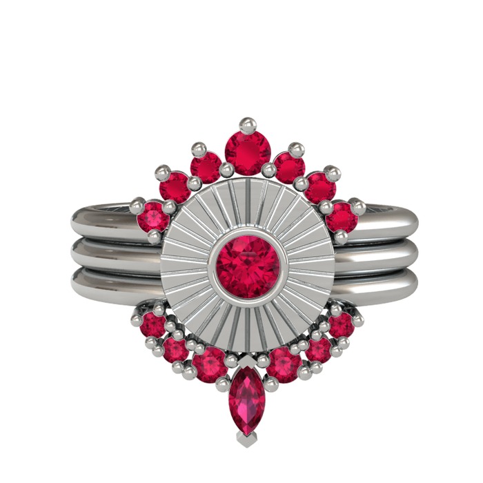 Rodolit garnet 18 ayar beyaz altın yüzük