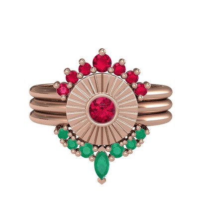 Rodolit garnet ve kök zümrüt 8 ayar rose altın yüzük