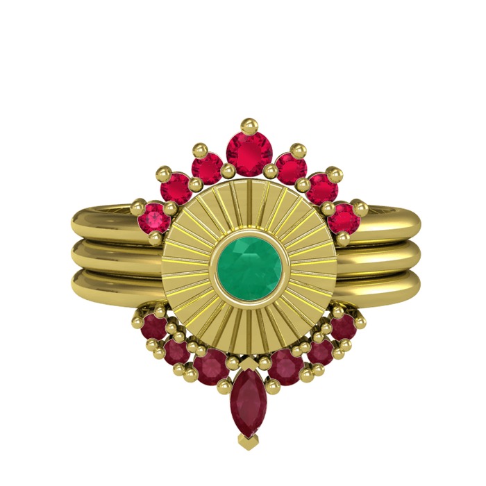 Rodolit garnet, kök zümrüt ve kök yakut 925 ayar altın kaplama gümüş yüzük