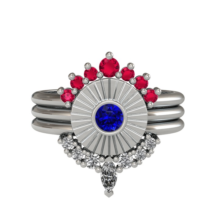 Rodolit garnet, lab safir ve swarovski 8 ayar beyaz altın yüzük