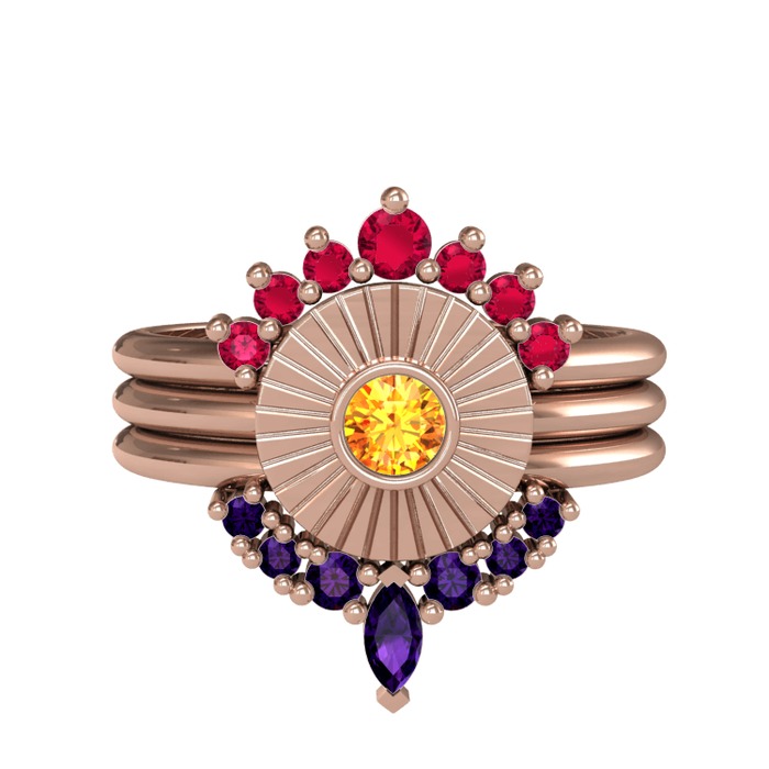 Rodolit garnet, sitrin ve ametist 18 ayar rose altın yüzük