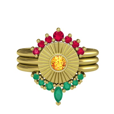 Rodolit garnet, sitrin ve kök zümrüt 925 ayar altın kaplama gümüş yüzük