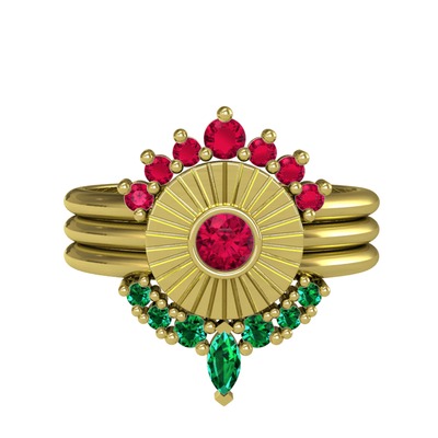 Rodolit garnet ve yeşil kuvars 18 ayar altın yüzük