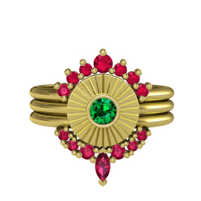 Rodolit garnet ve yeşil kuvars 18 ayar altın yüzük