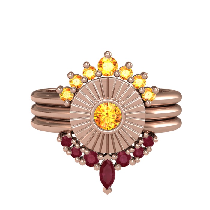 Sitrin ve kök yakut 18 ayar rose altın yüzük