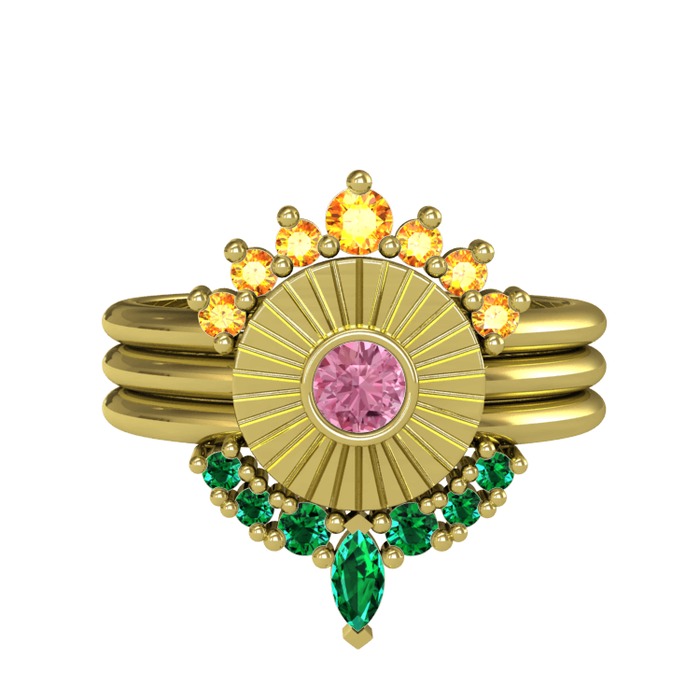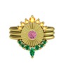 Sitrin, pembe kuvars ve yeşil kuvars 18 ayar altın yüzük