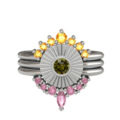Sitrin, peridot ve pembe kuvars 8 ayar beyaz altın yüzük