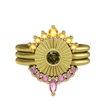 Sitrin, peridot ve pembe kuvars 925 ayar altın kaplama gümüş yüzük