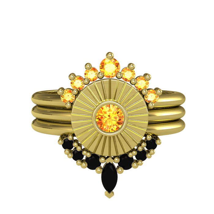 Sitrin ve siyah zirkon 925 ayar altın kaplama gümüş yüzük