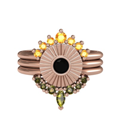 Sitrin, siyah zirkon ve peridot 18 ayar rose altın yüzük