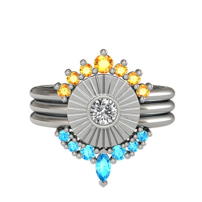 Sitrin, swarovski ve akuamarin 18 ayar beyaz altın yüzük