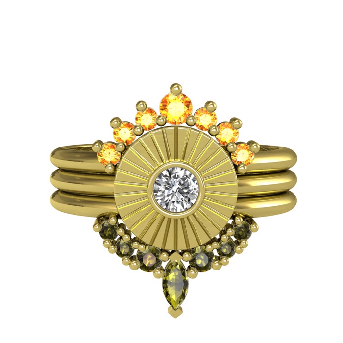 Sitrin, swarovski ve peridot 8 ayar altın yüzük