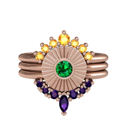 Sitrin, yeşil kuvars ve ametist 14 ayar rose altın yüzük