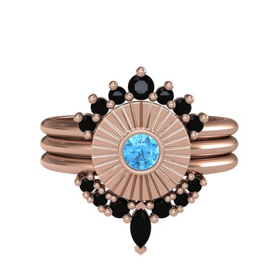 Siyah zirkon ve akuamarin 18 ayar rose altın yüzük
