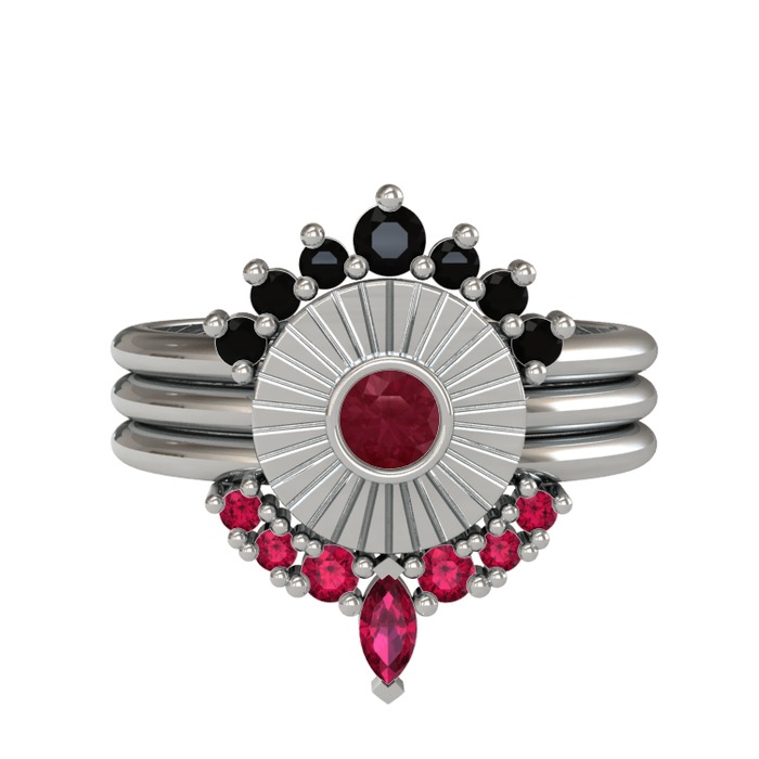 Siyah zirkon, kök yakut ve rodolit garnet 925 ayar gümüş yüzük