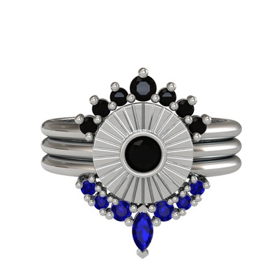 Siyah zirkon ve lab safir 14 ayar beyaz altın yüzük
