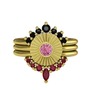 Siyah zirkon, pembe kuvars ve kök yakut 925 ayar altın kaplama gümüş yüzük