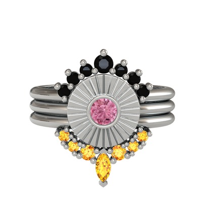 Siyah zirkon, pembe kuvars ve sitrin 18 ayar beyaz altın yüzük
