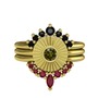Siyah zirkon, peridot ve kök yakut 925 ayar altın kaplama gümüş yüzük