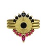Siyah zirkon ve rodolit garnet 8 ayar altın yüzük