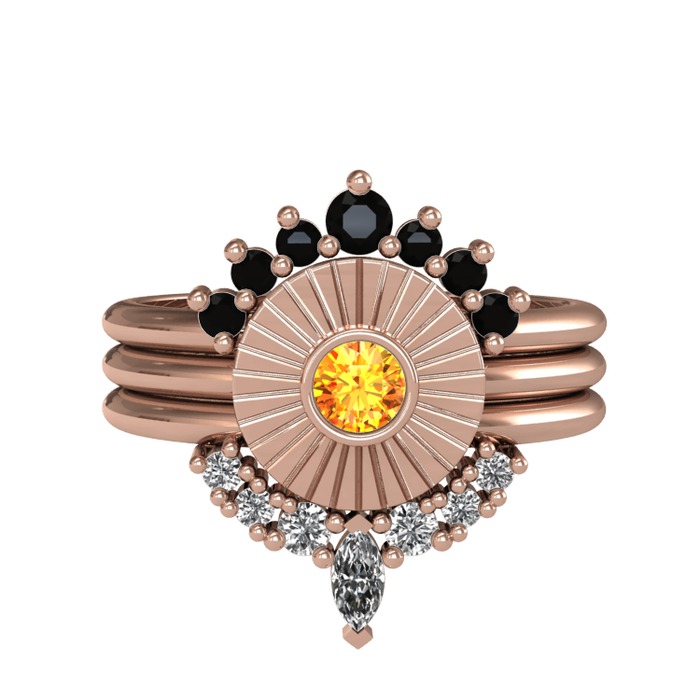 Siyah zirkon, sitrin ve swarovski 14 ayar rose altın yüzük