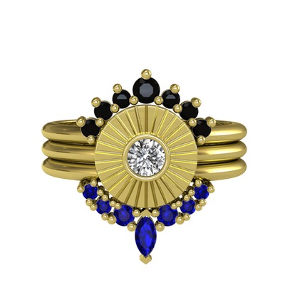 Siyah zirkon, swarovski ve lab safir 14 ayar altın yüzük