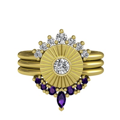 Swarovski, beyaz zirkon ve ametist 8 ayar altın yüzük