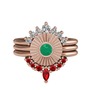 Swarovski, kök zümrüt ve garnet 925 ayar rose altın kaplama gümüş yüzük