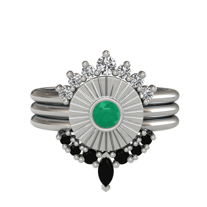 Swarovski, kök zümrüt ve siyah zirkon 18 ayar beyaz altın yüzük